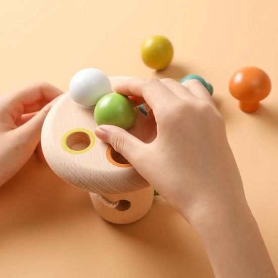 La corde d'enfilage, avec son aspect de petit ver, captivera leur attention et les encouragera à la glisser dans les trous avec enthousiasme. Parfait pour développer la coordination des mouvements.