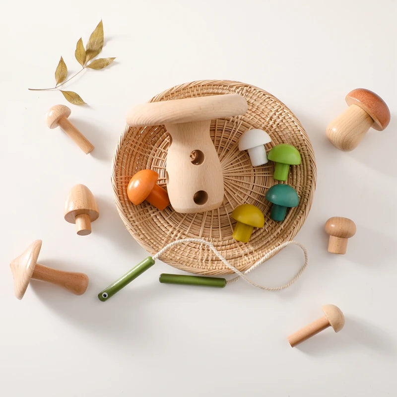 🍄 Champignons mignons 🧵 Enfilage facile✨ Émerveillement garanti ♻️ Bois de qualité